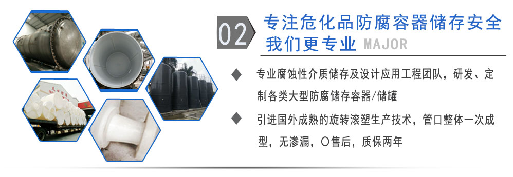 公司有鋼襯塑PE/PO、PE全塑、碳鋼、不銹鋼四大系列100多個(gè)品種,專(zhuān)注于常壓儲(chǔ)存容器生產(chǎn),其產(chǎn)品包括鋼襯塑儲(chǔ)罐、管口一體成型PE儲(chǔ)罐、碳鋼儲(chǔ)罐、不銹鋼儲(chǔ)罐、反應(yīng)釜、攪拌罐、離子交換柱、鋼襯PE/PO儲(chǔ)罐、塑料儲(chǔ)罐、鹽酸儲(chǔ)罐、硫酸儲(chǔ)罐等等。更大限度滿足廣大客戶(hù)的各種需求,同時(shí)可以根據(jù)客戶(hù)的需要加工定制各種防腐設(shè)備。